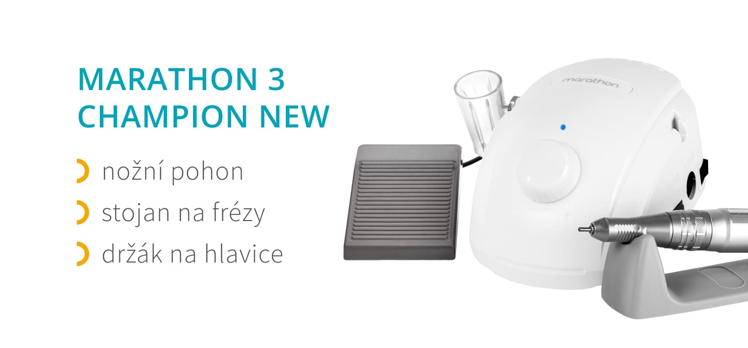 Bruska na nehty Saeyang Marathon 3 Champion NEW je nová, osvěžená generace špičková frézka oceňovaná profesionály. Usnadňuje důkladnou přípravu nehtové kůžičky a nehtů i odstraňování zbytků po předchozích úpravách nehtů, což výrazně usnadňuje jejich přípravu na další ošetření. Díky dobře vyvážené hlavě a dokonale promyšleným funkcím je frézka ideální pro profesionální i domácí použití.