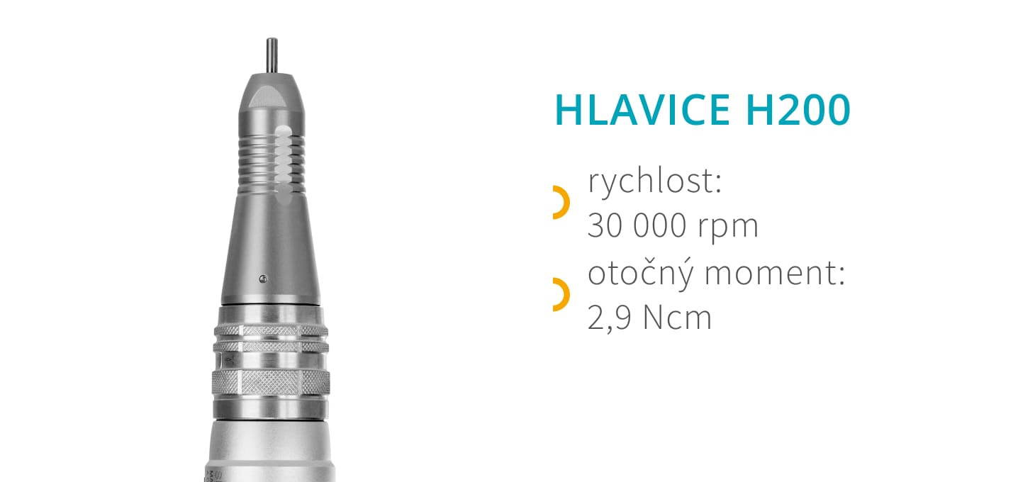 Hlava H200 perfektně padne do ruky, což zaručuje vysokou úroveň pohodlí. Je vybavena snadno použitelným systémem Twist-Lock, který umožňuje rychlou a bezproblémovou výměnu frézy. Díky tomu je práce s ní mimořádně snadná a intuitivní, což ocení i náročnější uživatelé. Kus je vhodně vyvážený a ergonomicky tvarovaný a navíc byly sníženy vibrace hlavy, takže ani několikahodinová práce s frézou nadměrně neunavuje ruku. Vysoký komfort při práci zajišťuje pružný odpružený kabel, který při výrazném natažení dosahuje délky až 135 cm.