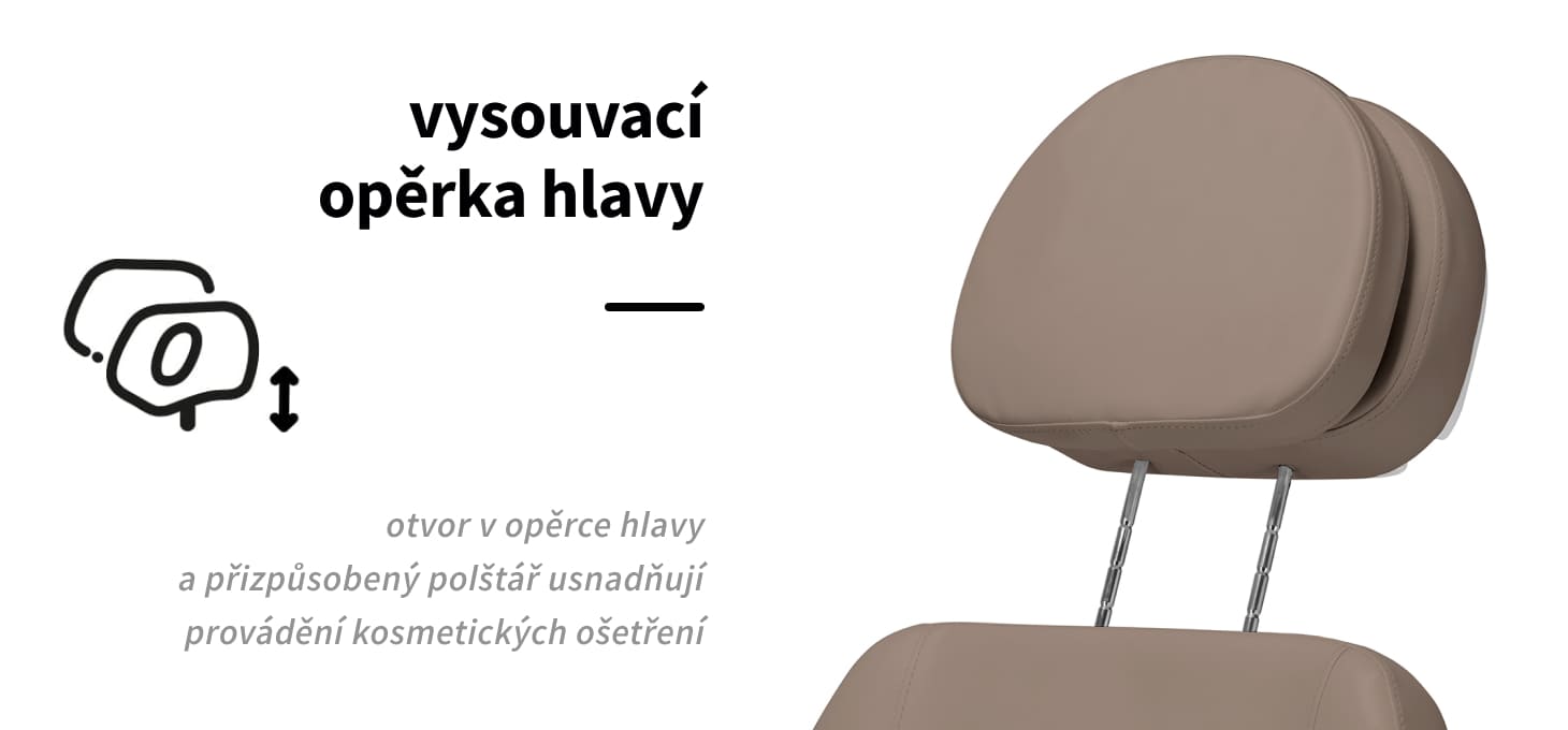 Široké sedadlo zajišťuje pohodlí při dlouhých ošetřeních. Způsob tvarování pěny dává křeslu ergonomický tvar a umožňuje tělu pohodlně sedět v sedadle, což zajišťuje vysokou úroveň pohodlí a správnou oporu páteře. Zařízení lze rozložit do polohy lehátka a díky skrytému otvoru v opěrce hlavy pod polštářem je ideální také pro ošetření zad nebo masáže.