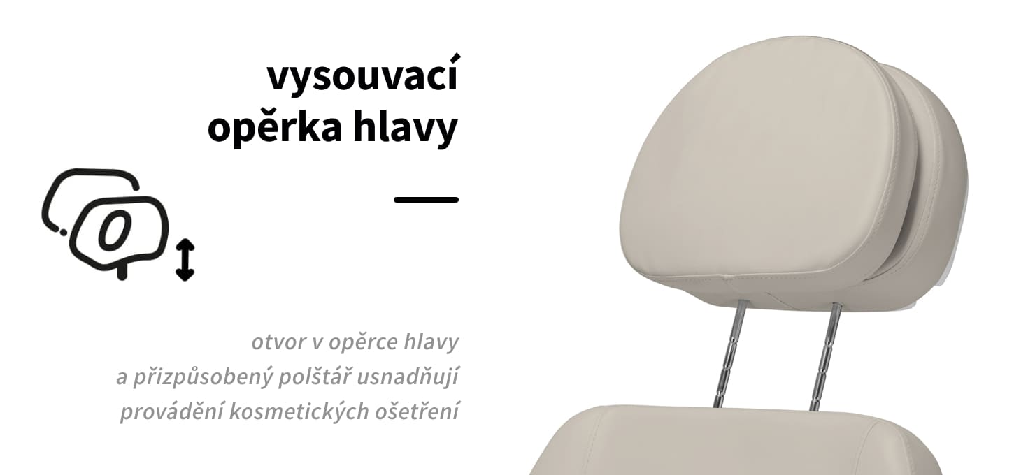 Výsuvná opěrka hlavy pomáhá přizpůsobit zařízení uživatelům různé výšky a poskytuje stabilní oporu hlavy během ošetření. Je také možné nastavit prodloužení opěrky nohou, což se bude hodit zejména při ošetření vyšších osob, kterým poskytne lepší oporu. Opěrky rukou jsou pohyblivé o 180°, což usnadňuje efektivní sezení a pohodlný přístup pro ošetřujícího. V případě potřeby je lze snadno a rychle odejmout.