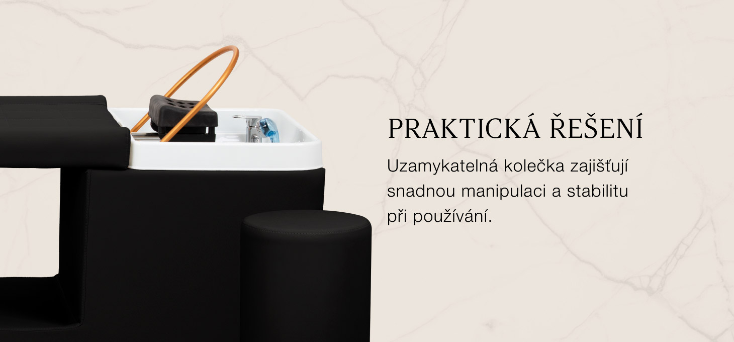 Jednotka upoutá pozornost svým moderním tvarem a kontrastní barevnou kombinací - elegantní bílá s tmavě černou. Minimalistické tělo se zaoblenými hranami působí stylově a profesionálně a dokonale ladí s designem moderních kosmetických salonů a SPA salonů. Myčka je vybavena uzamykatelnými kolečky, která zajišťují pohodlnou přepravu a stabilitu při používání. Je ideálním řešením pro menší prostory - jedna mobilní jednotka může sloužit několika ošetřovacím stanicím, což z ní činí mimořádně funkční a ekonomickou volbu.