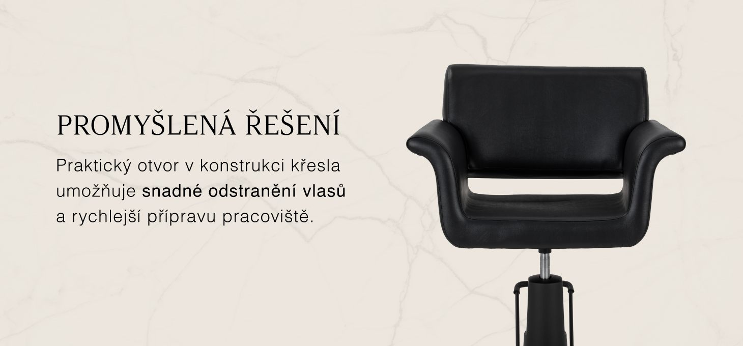 Sedadlo je navrženo s ohledem na pohodlí i při delším ošetření. Směrem ven zakřivené opěrky rukou umístěné v ergonomické výšce podporují správné držení těla klienta a usnadňují přesné stříhání a styling. Další vymožeností je otvor mezi opěradlem a sedadlem, který usnadňuje čištění tím, že umožňuje rychlé odstranění chloupků z těžko přístupných míst. Díky tomu je příprava stanice pro dalšího klienta jednodušší, rychlejší a hygieničtější.