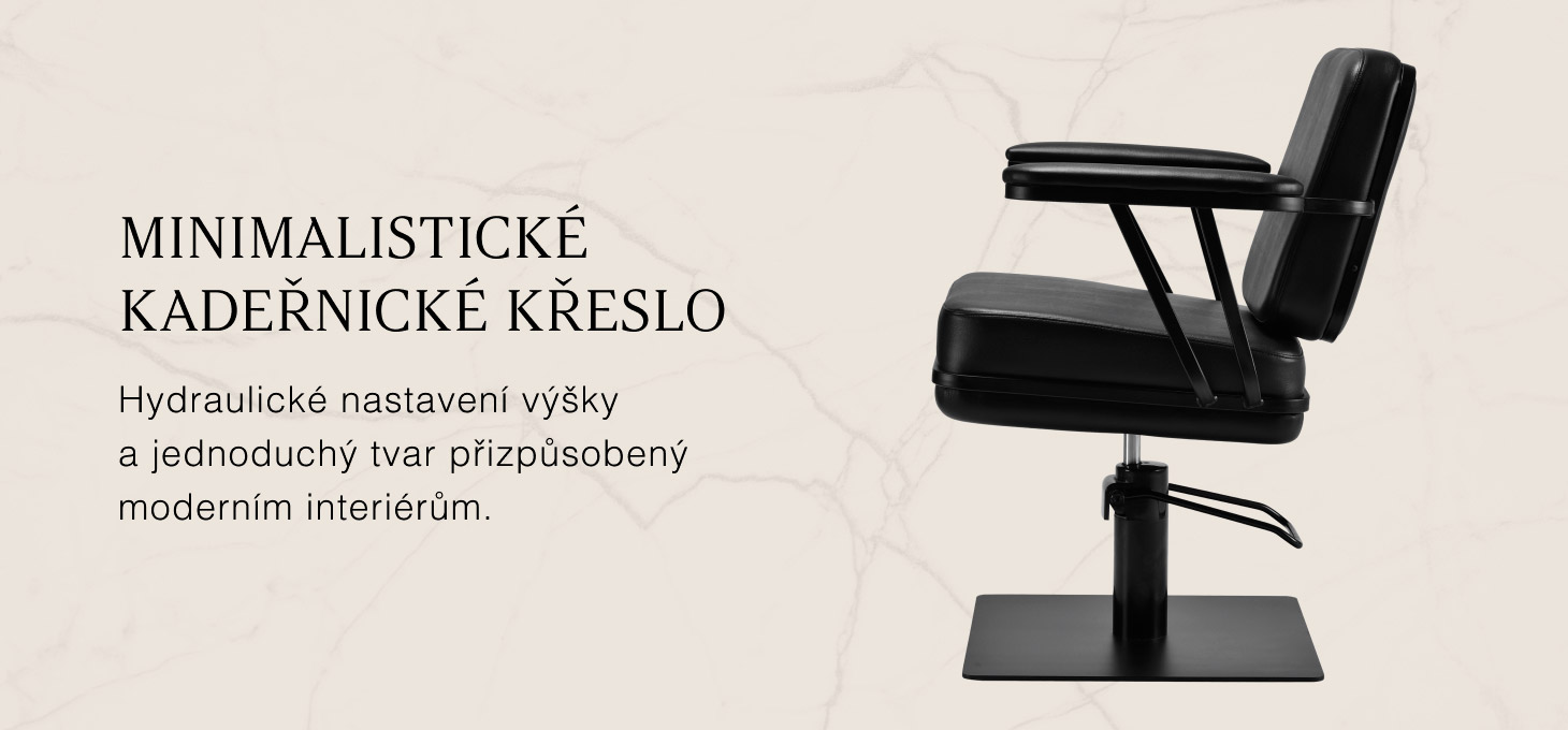 Profilované křeslo poskytuje oporu bederní páteře a vysoký komfort používání, zatímco čalouněné područky umožňují správné umístění ramen zákazníka. Stabilní čtvercová základna v matné černé barvě podtrhuje stylový vzhled a příjemná na dotek syntetická kůže v odstínech černé zaručuje pohodlí při dlouhých procedurách, odolnost, odolnost proti vlhkosti a snadné čištění. Moderní design dodává interiéru jedinečný charakter a křeslo se hodí jak do moderních, tak do klasických interiérů, kde podtrhuje profesionální image salonu.