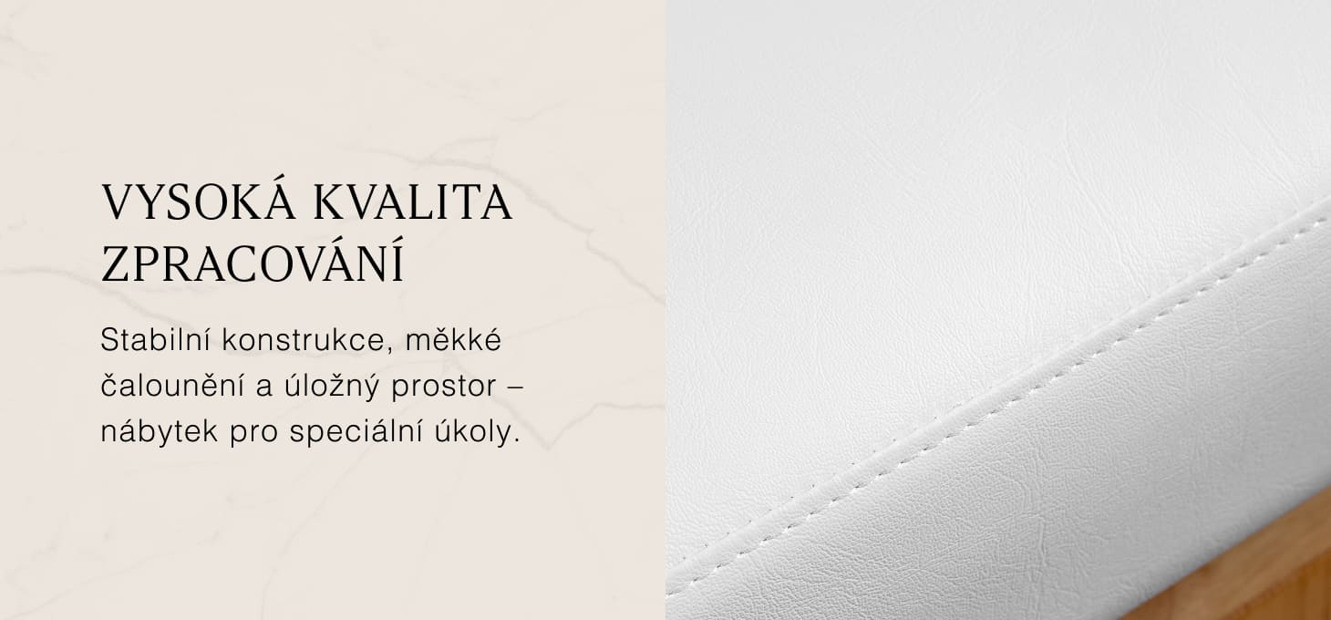 Lůžko Head Spa Bali je harmonickou kombinací funkčnosti a moderního designu. Jeho stabilní konstrukci zpevňuje pevný rám zakončený estetickými dřevěnými prvky, které dodávají interiéru teplo a eleganci. Robustní konstrukce zaručuje stabilitu a odolnost pro dlouhodobé používání. Ergonomicky profilovaný povrch lehátka je potažen měkkou syntetickou kůží v elegantních bílých odstínech, která zajišťuje maximální pohodlí při ošetření a zároveň umožňuje snadnou údržbu. Praktická skříňka umístěná pod lehátkem umožňuje pohodlné uložení kosmetiky a příslušenství, díky čemuž jsou všechny potřebné produkty vždy na dosah. Kombinace přírodního dřeva, měkké syntetické kůže a ergonomického designu činí z lehátka Head Spa Bali stylový a funkční kus nábytku pro kadeřnické salony, SPA a wellness centra. Je navržen tak, aby kombinoval komfort používání s nadčasovou estetikou.