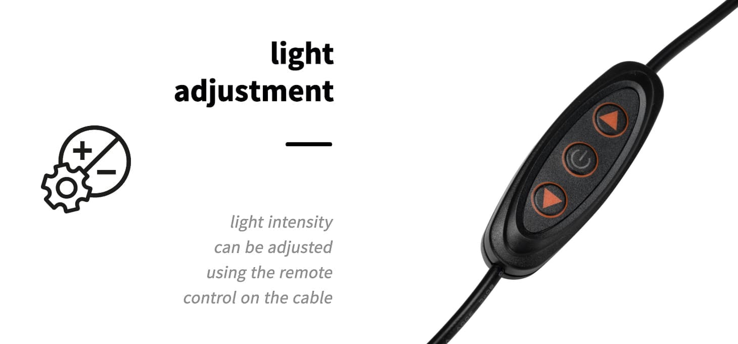 Intenzitu lze plynule regulovat pomocí dálkového ovladače na napájecím kabelu. Nastavení umožňuje zajistit, aby byla ošetřovaná oblast vždy přesně osvětlena. To poskytuje obrovský prostor pro přizpůsobení osvětlení individuálním potřebám a prováděným službám v daném okamžiku. Zvyšuje tak efektivitu a přesnost práce, aniž by se zvyšovala zraková zátěž.