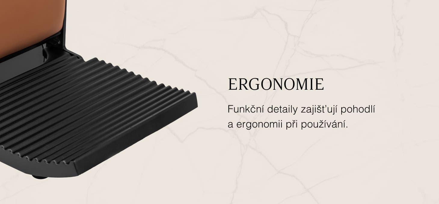 Sedadlo vyplněné měkkou pěnou poskytuje klientovi vysokou úroveň pohodlí i při delších ošetřeních. Ergonomicky tvarovaná opěrka zad podporuje záda a umožňuje pohodlnou polohu, což vede k většímu uvolnění a lepšímu zážitku z ošetření. Plně otočný mechanismus židle zvyšuje volnost pohybu, usnadňuje přístup ze všech stran a zlepšuje pracovní postupy stylisty. Čalouněné područky nastavené do optimální výšky podporují přirozenou polohu paží a zabraňují napětí v oblasti ramen a krku.
