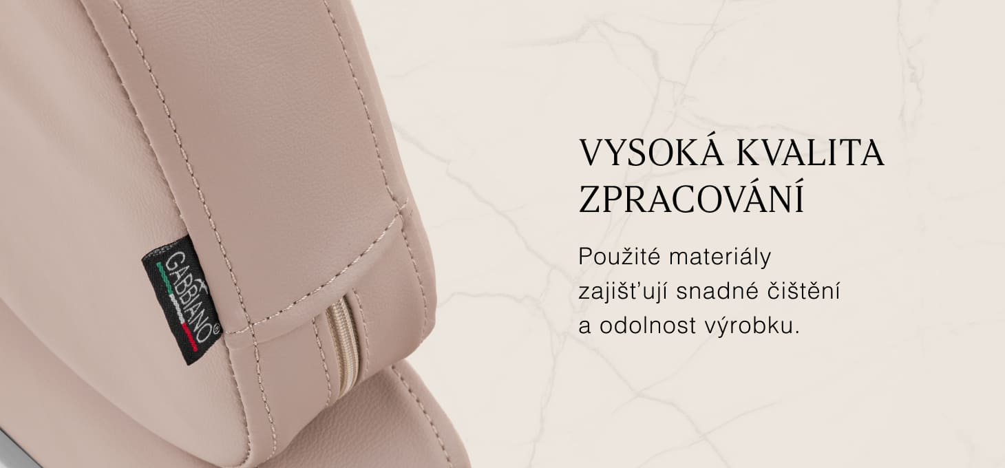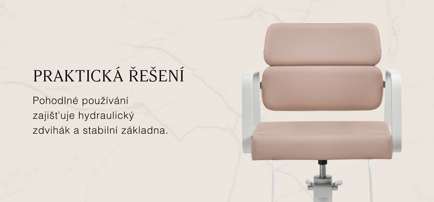 Polstrování z odolné pěny odolné proti deformacím a čalounění z na dotek příjemné syntetické kůže zajišťují odolnost nábytku a jeho pohodlné používání po dlouhou dobu. Díky nim je také odolný proti vlhkosti, trvanlivý a snadno se čistí. Potah v béžových tónech mu dodává jedinečný charakter. Zařízení se vyznačuje moderním designem, díky němuž se křeslo skvěle vyjímá v mnoha profesionálních salonech.