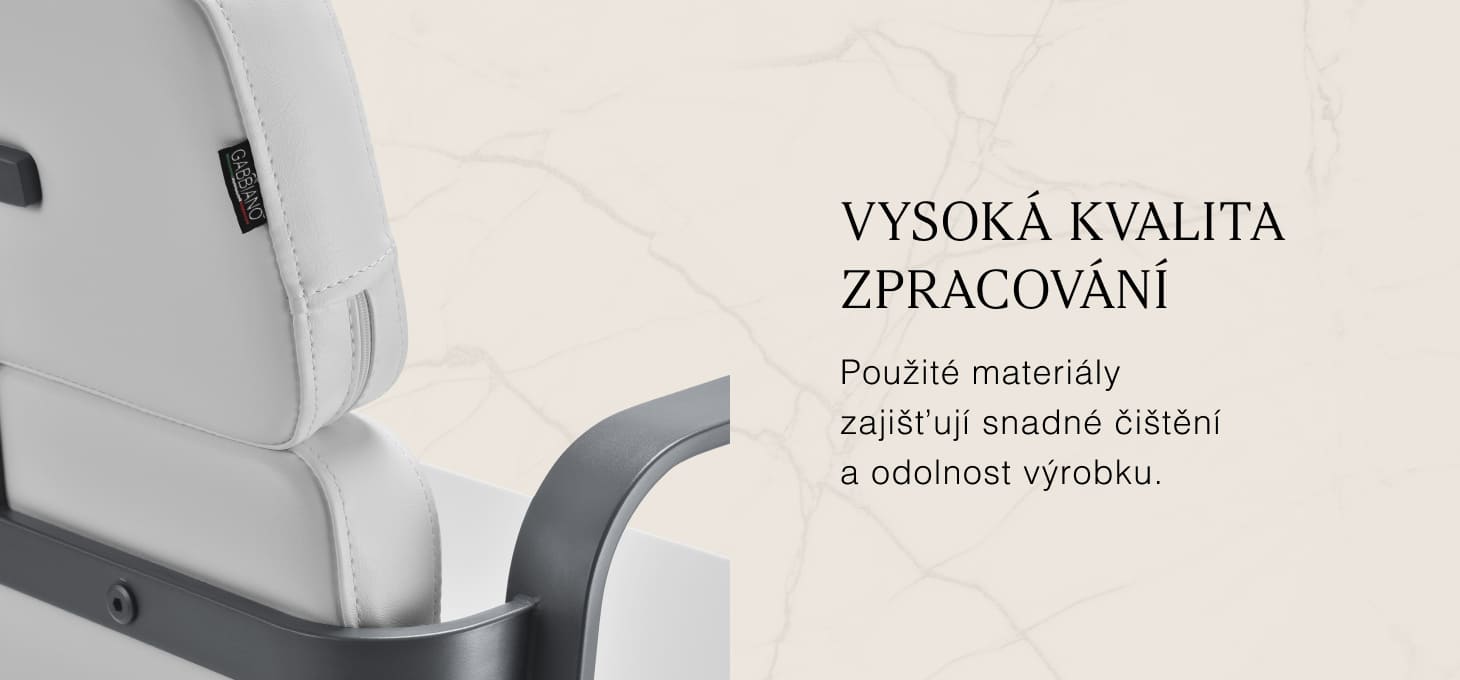 Polstrování z odolné pěny odolné proti deformacím a čalounění z na dotek příjemné syntetické kůže zajišťují odolnost nábytku a jeho pohodlné používání po dlouhou dobu. Díky nim je také odolný proti vlhkosti, trvanlivý a snadno se čistí. Potah v bílých tónech mu dodává jedinečný charakter. Zařízení se vyznačuje moderním designem, díky němuž se křeslo skvěle vyjímá v mnoha profesionálních salonech.