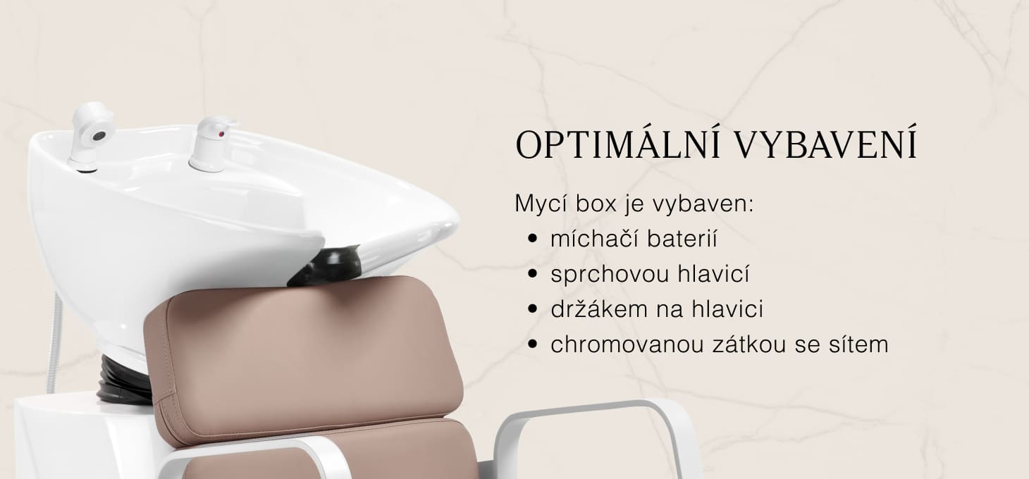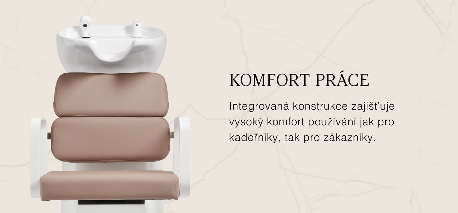 Praktická myčka vlasů je vybavena směšovací baterií, která poskytuje volný přístup k teplé a studené vodě. Díky tomu lze snadno přizpůsobit teplotu individuálním preferencím zákazníka. Vyhrazené místo pro odložení sluchátka zefektivňuje práci a chromovaná zátka se speciálním sítkem umožňuje kontrolovat průtok vody a udržovat v salonu vysoké hygienické standardy. Přípojka vody byla umístěna uvnitř základny, což umožňuje efektivní skrytí potrubí. Významnou výhodou tohoto modelu je otvor ponechaný mezi opěradlem a sedákem, který usnadňuje udržování čistoty v salonu a umožňuje snadné vymetení nečistot z každého zákoutí křesla. Myčka je profilována tak, aby zajistila pohodlí při různých ošetřeních a zaručila správnou oporu zad. Díky kombinaci funkčnosti a vybavení je práce v kadeřnickém salonu ještě pohodlnější.