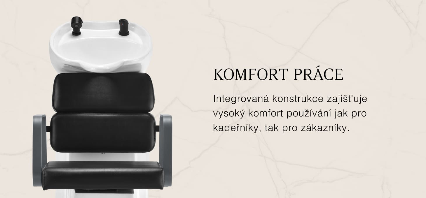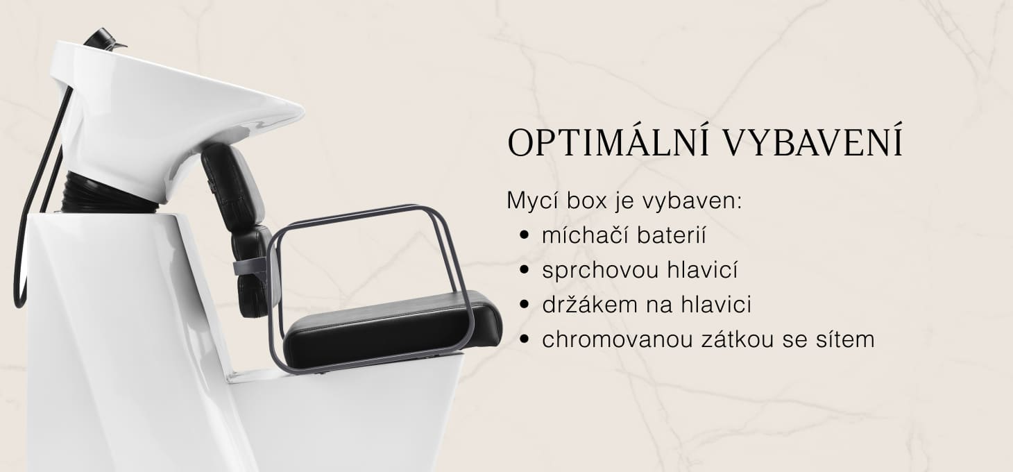 Praktická myčka vlasů je vybavena směšovací baterií, která poskytuje volný přístup k teplé a studené vodě. Díky tomu lze snadno přizpůsobit teplotu individuálním preferencím zákazníka. Vyhrazené místo pro odložení sluchátka zefektivňuje práci a chromovaná zátka se speciálním sítkem umožňuje kontrolovat průtok vody a udržovat v salonu vysoké hygienické standardy. Přípojka vody byla umístěna uvnitř základny, což umožňuje efektivní skrytí potrubí. Významnou výhodou tohoto modelu je otvor ponechaný mezi opěradlem a sedákem, který usnadňuje udržování čistoty v salonu a umožňuje snadné vymetení nečistot z každého zákoutí křesla. Myčka je profilována tak, aby zajistila pohodlí při různých ošetřeních a zaručila správnou oporu zad. Díky kombinaci funkčnosti a vybavení je práce v kadeřnickém salonu ještě pohodlnější.