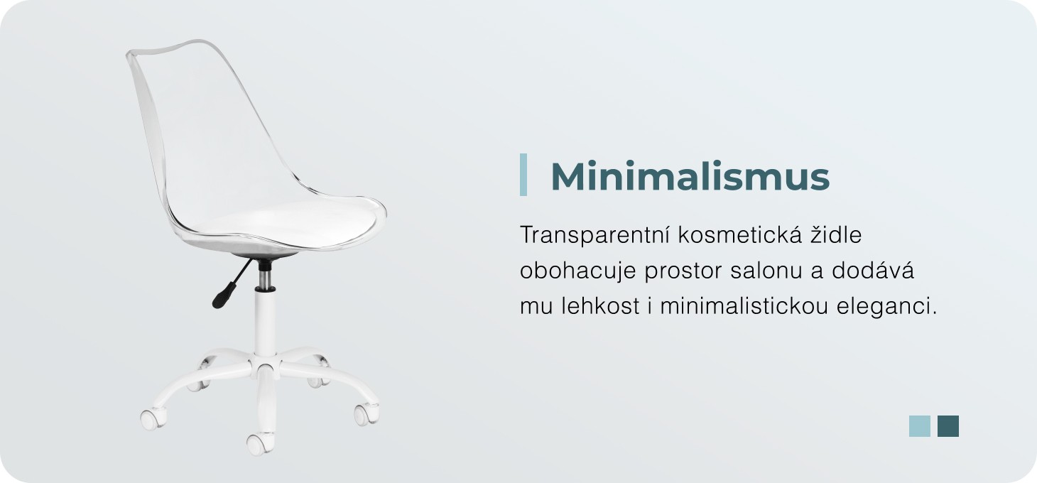Transparentní kosmetické křeslo Ghost svým moderním tvarem skvěle doplňuje prostor kanceláře a dodává mu lehký a minimalistický ráz. Průhledné opěradlo kombinuje estetiku s funkčností a vytváří pohodlné místo pro práci na různých typech ošetření.