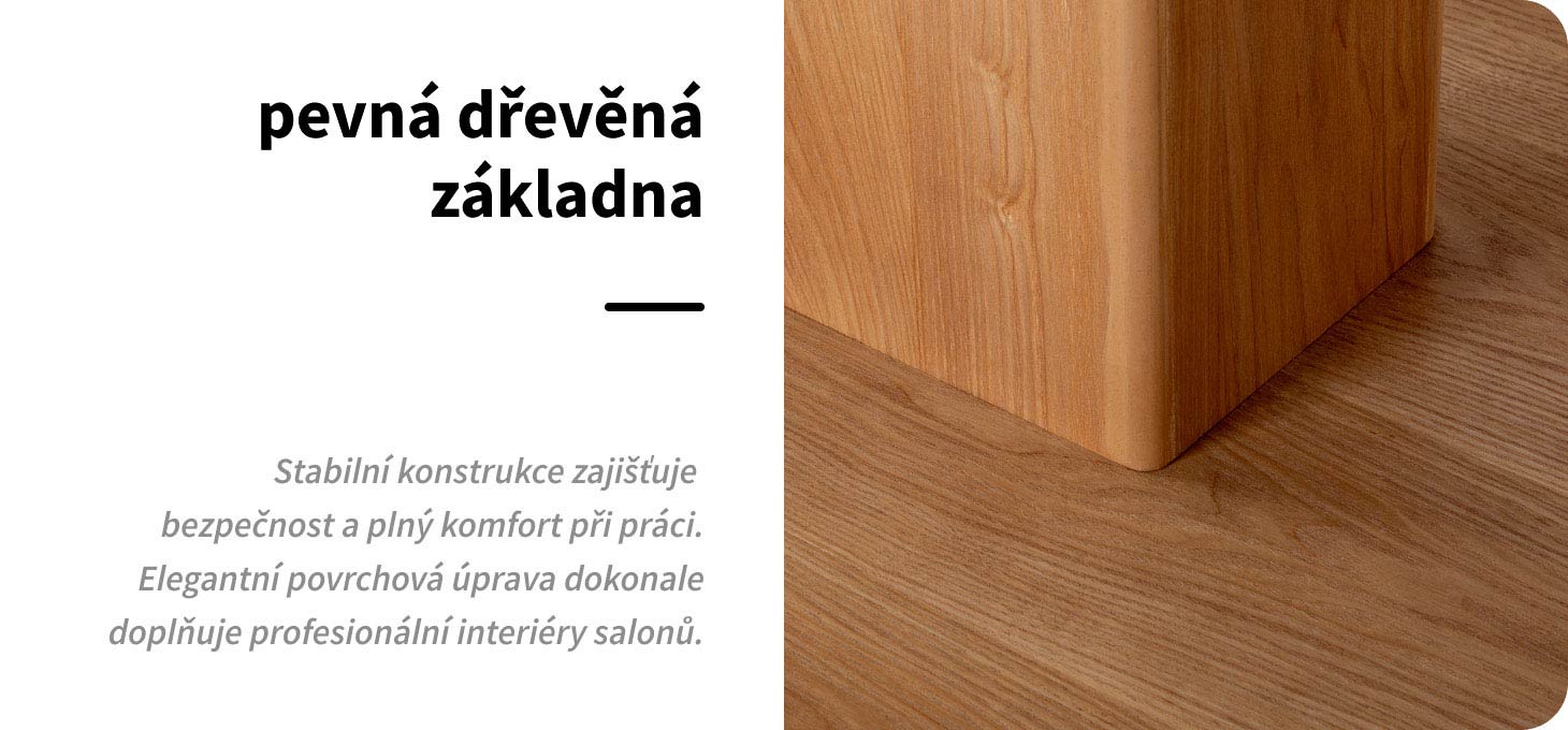 Moderní kosmetické lehátko s pevnou dřevěnou základnou kombinuje maximální stabilitu s jedinečným stylem. Díky konstrukci, která zaručuje spolehlivou oporu, je každý kosmetický, pečující, relaxační nebo masážní zákrok bezpečný a pohodlný – jak pro klienta, tak pro profesionála. Tlumená barevná škála a pečlivě zpracované detaily zajišťují , že lehátko zapadá do elegantních interiérů kosmetických salónů, masážních salónů a SPA a wellness zón. Promyšlený design podtrhuje profesionalitu salónu, zvyšuje důvěru zákazníků a zvyšuje vnímanou hodnotu nabízených služeb.