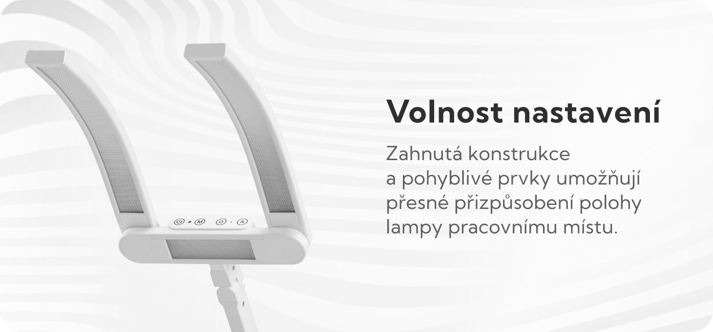 Pohyblivé prvky stativu a hlavy lampy poskytují velkou volnost při nastavení osvětlení pracoviště v závislosti na typu prováděného zákroku. Polohu stativu lze snadno regulovat díky čtyřem kloubům umístěným na rameni a otočné základně stativu v rozsahu 360°. Tato řešení umožňují přesné přizpůsobení nastavení hlavy individuálním potřebám uživatele a zaručují optimální osvětlení pracovního prostoru a vysoký komfort práce.